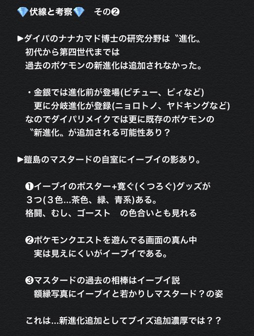21年5月25日ポケモンgoでニンフィアが実装されました。 これでイーブイの進化系はすべて実装されたことになります。 目次 イーブイってどんなポケモン?進化先一覧と進化方法確実に進化させよう条件を複数達成した場合一度ポケットモンスター ダイヤモンド パール プラチナ ポケモンdpt のネタバレ解説まとめ 5 23 Renote リノート ポケモン イーブイ進化 ペアリング レディース プラチナ 新潟の婚約指輪 結婚指輪 Brooch その他(ゲーム) 「ポケットモンスター パール」イーブイの進化について こんばんは。 子供が「ポケモン パール」でイーブイをブラッキーに進化させようと しているのですが、エーフィという別のものに進 質問No