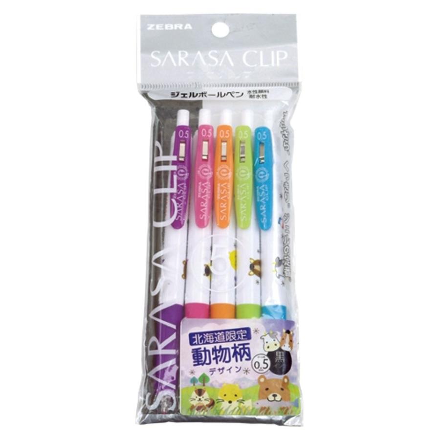 北海道限定 動物柄デザイン ゼブラ サラサ クリップ 5本入 0 5mm 黒 水性顔料 耐水性 ご当地ボールペン 毎日が北海道物産展 北海道 くしろキッチン お取り寄せ通販